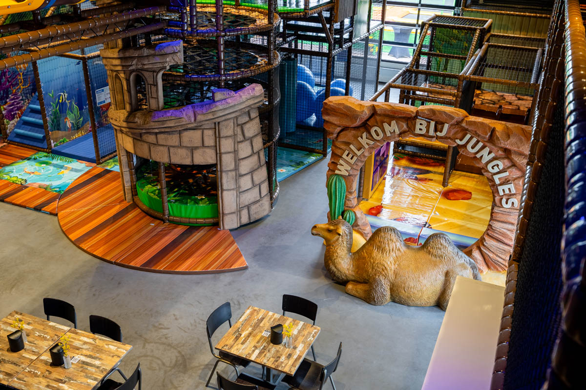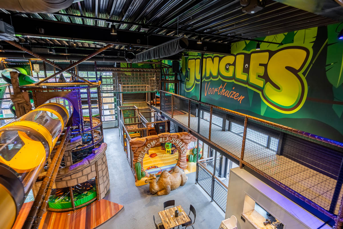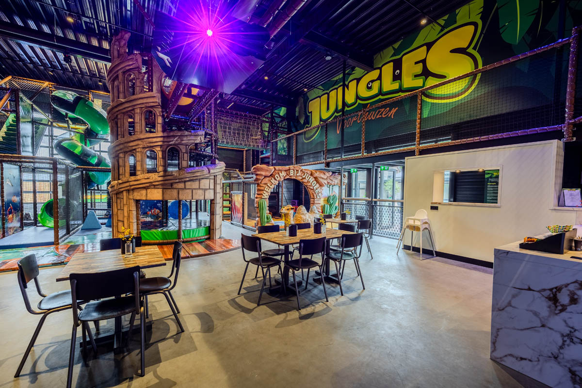 Bij JUNGLES verveel je je geen minuut. Het speelparadijs bestaat uit verschillende platformen waarop je van alles kunt doen. Beklim bijvoorbeeld de ‘Power Tower’, probeer de speeltoestellen of waag je op de interactieve klimwand. Onderweg naar de top zijn er allerlei hindernissen om te overwinnen. Ben je eenmaal boven, dan roetsj je zo met de glijbaan naar beneden. Nog een keer! Ook buiten kun je je uitleven, op de trampolines, de klimrekken en bij de spetterfontein.