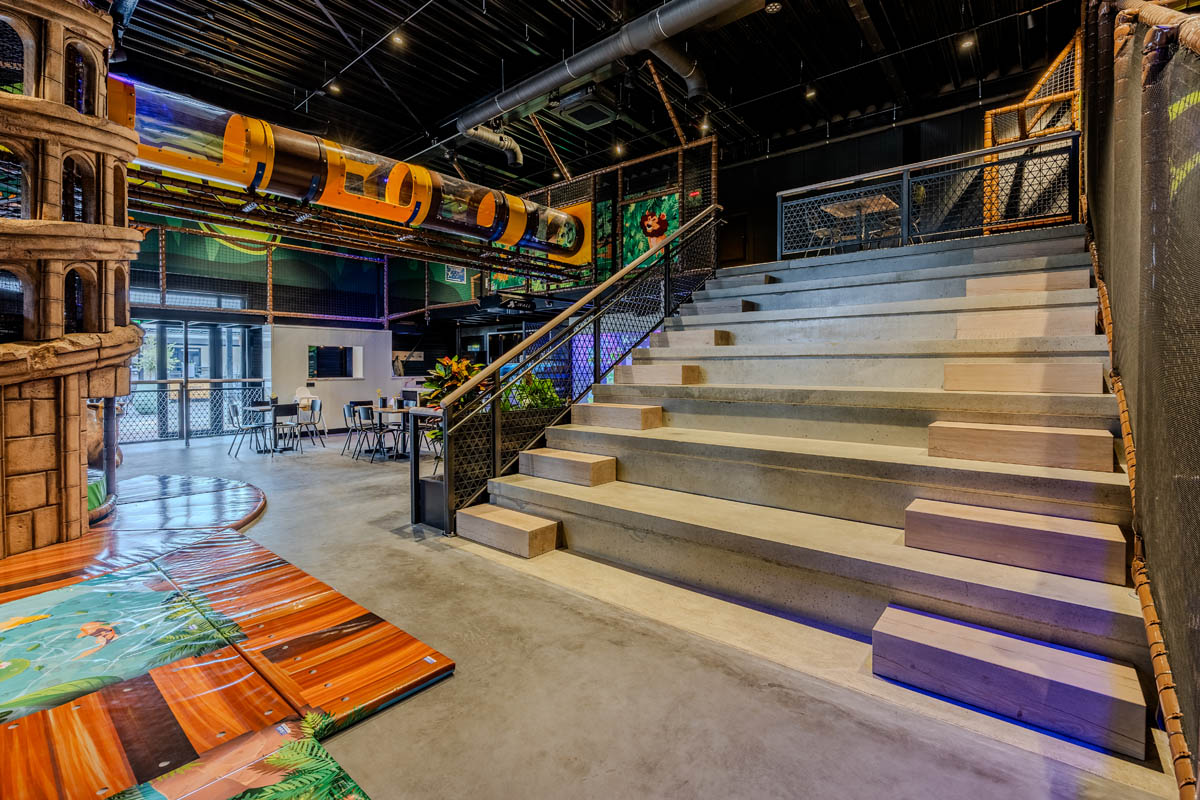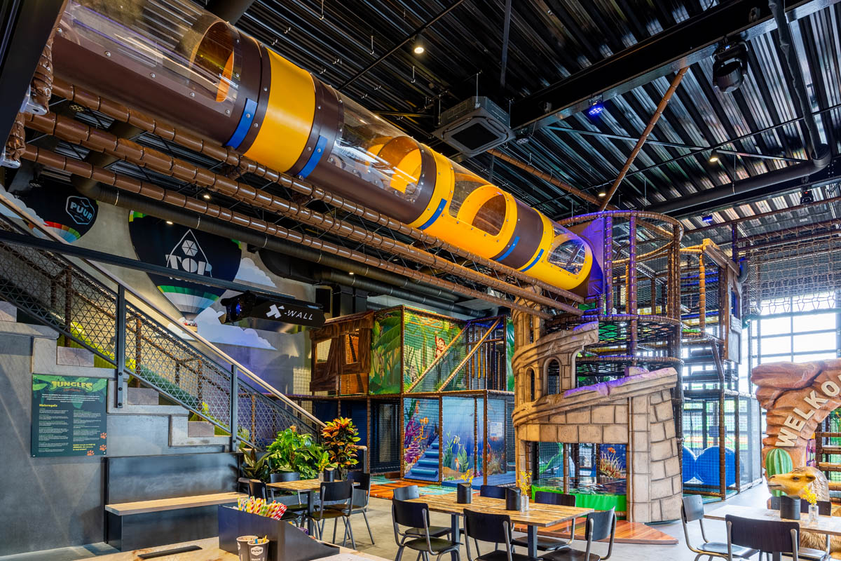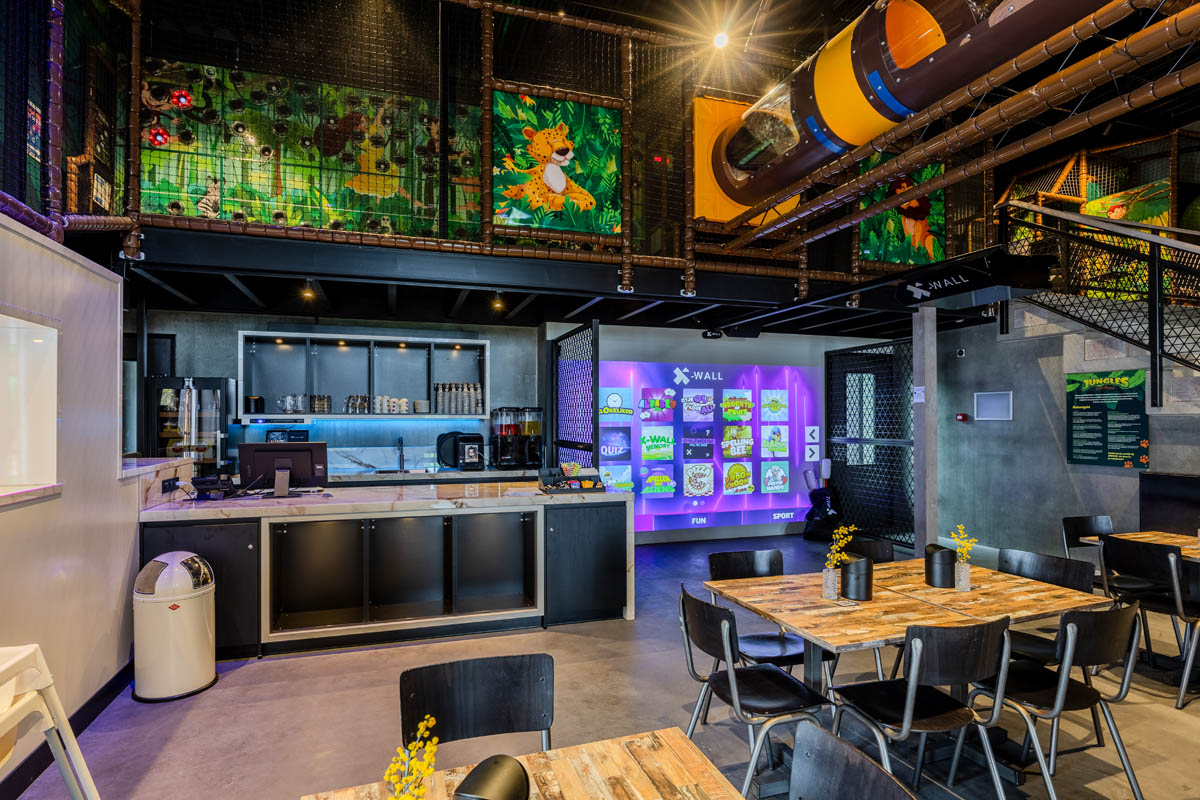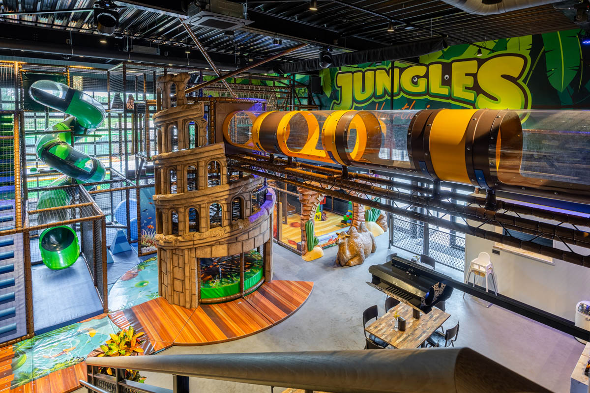 Bij JUNGLES verveel je je geen minuut. Het speelparadijs bestaat uit verschillende platformen waarop je van alles kunt doen. Beklim bijvoorbeeld de ‘Power Tower’, probeer de speeltoestellen of waag je op de interactieve klimwand. Onderweg naar de top zijn er allerlei hindernissen om te overwinnen. Ben je eenmaal boven, dan roetsj je zo met de glijbaan naar beneden. Nog een keer! Ook buiten kun je je uitleven, op de trampolines, de klimrekken en bij de spetterfontein.